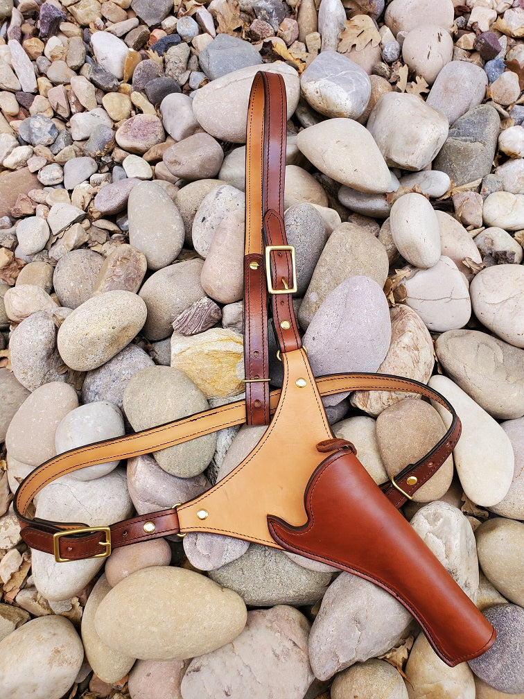 Using our very popular Jesse Slim holster, we've built a cross-draw western style shoulder rig that is incredibly comfortable to wear and promises faultless durability in the field. Using our favorite W&C full grain vegetable tanned leathers, this shoulder rig has 1" wide fully adjustable straps for a perfect fit.